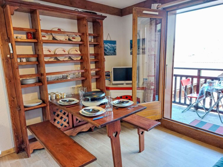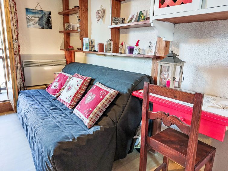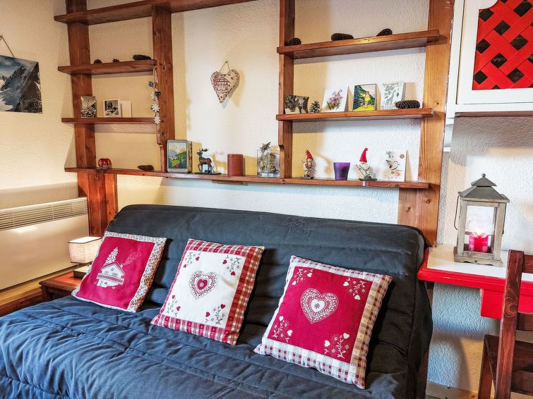 1-room studio 20 m2 on 1st floor. Entrance hall with 1 x 2 bunk beds (80 cm, length 190 cm). Living/dining room with 1 double sofabed (140 cm, length 190 cm). Kitchenette (2 hot plates, toaster, kettle, electric coffee machine, combination microwave). Bathroom, sep. WC. Electric heating.
