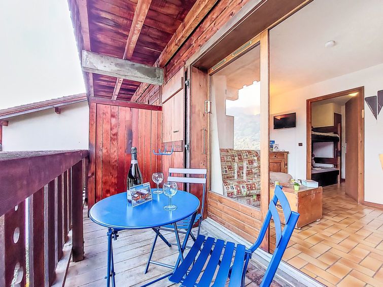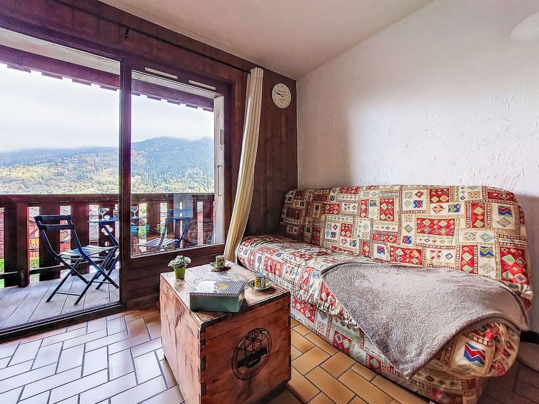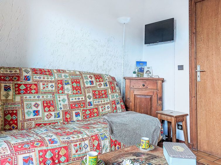"Les Grets", 1-room studio 27 m2. Entrance hall with 1 x 2 bunk beds (80 cm, length 190 cm). Living/dining room with 1 sofabed (140 cm, length 190 cm), TV (flat screen). Exit to the balcony. Kitchenette (2 hot plates, toaster, kettle, microwave, electric coffee machine, raclette grill, fondue Set (cheese)).