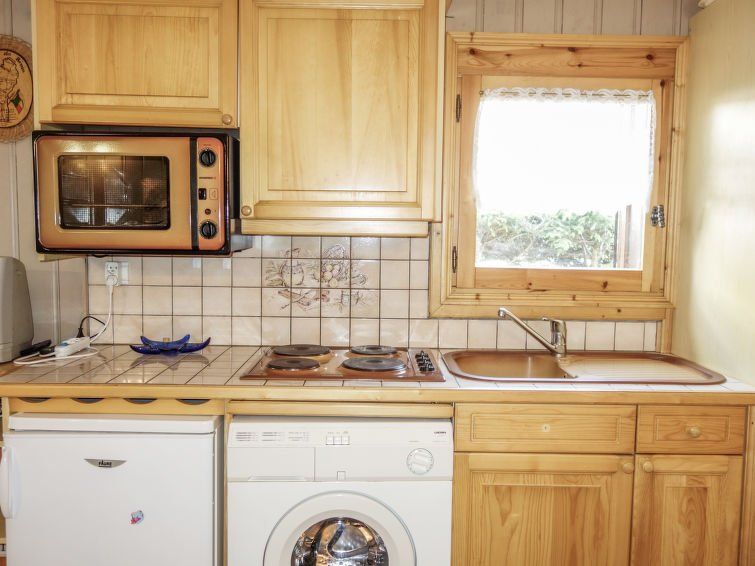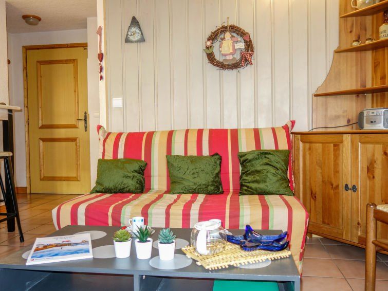 "Jardins Alpins 1", 2-room apartment 30 m2, on the ground floor. Entrance hall. Living/dining room with TV, flat screen and CD-player. 1 room with 1 french bed (140 cm). Living/sleeping room with 1 x 2 bunk beds (80 cm). Kitchenette (4 hot plates, mini-oven, oven, toaster, kettle, electric coffee machine, raclette grill).
