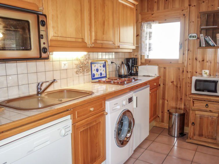 "Jardins Alpins 4", 2-room apartment 28 m2 on 2nd floor. Entrance hall. Living/dining room with 1 double sofabed (135 cm), TV and flat screen. 1 room with 1 french bed (140 cm). Kitchenette (4 hot plates, oven, dishwasher, toaster, kettle, microwave, electric coffee machine, raclette grill).