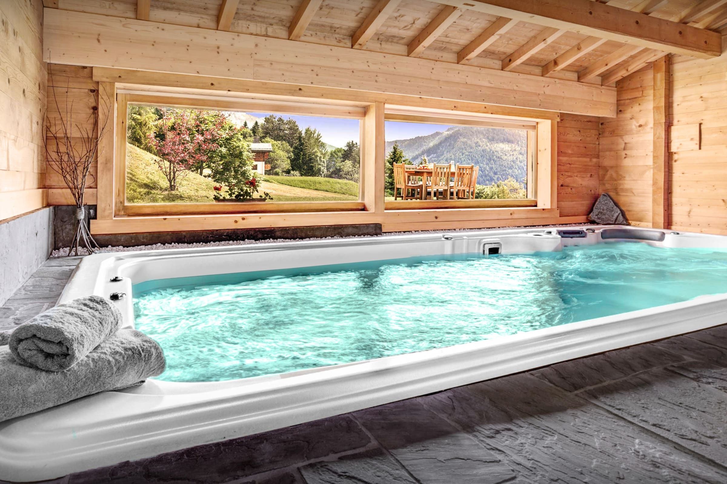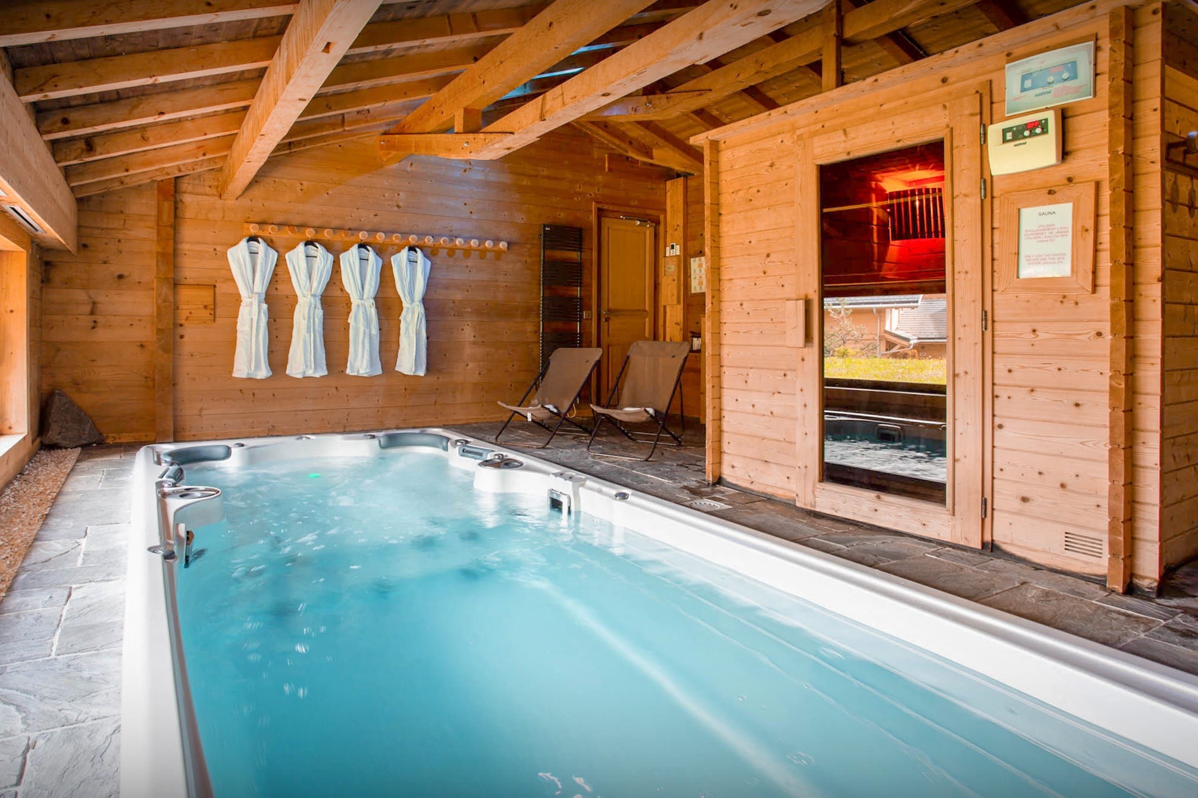 Just above the village of St-Jean-de-Sixt, this cosy chalet is ideal for two or three families. It’s surrounded by fields where children can play, with fabulous views on all sides. The living area has double-height ceilings and windows looking down the valley towards Thônes, with a TV room on the mezzanine. There’s a spa room with a counter-current pool and a Jacuzzi section, perfect after a day on the slopes. The chalet is halfway between the ski resorts of La Clusaz and Le Grand Bornand, giving you access to some of the best skiing in France.