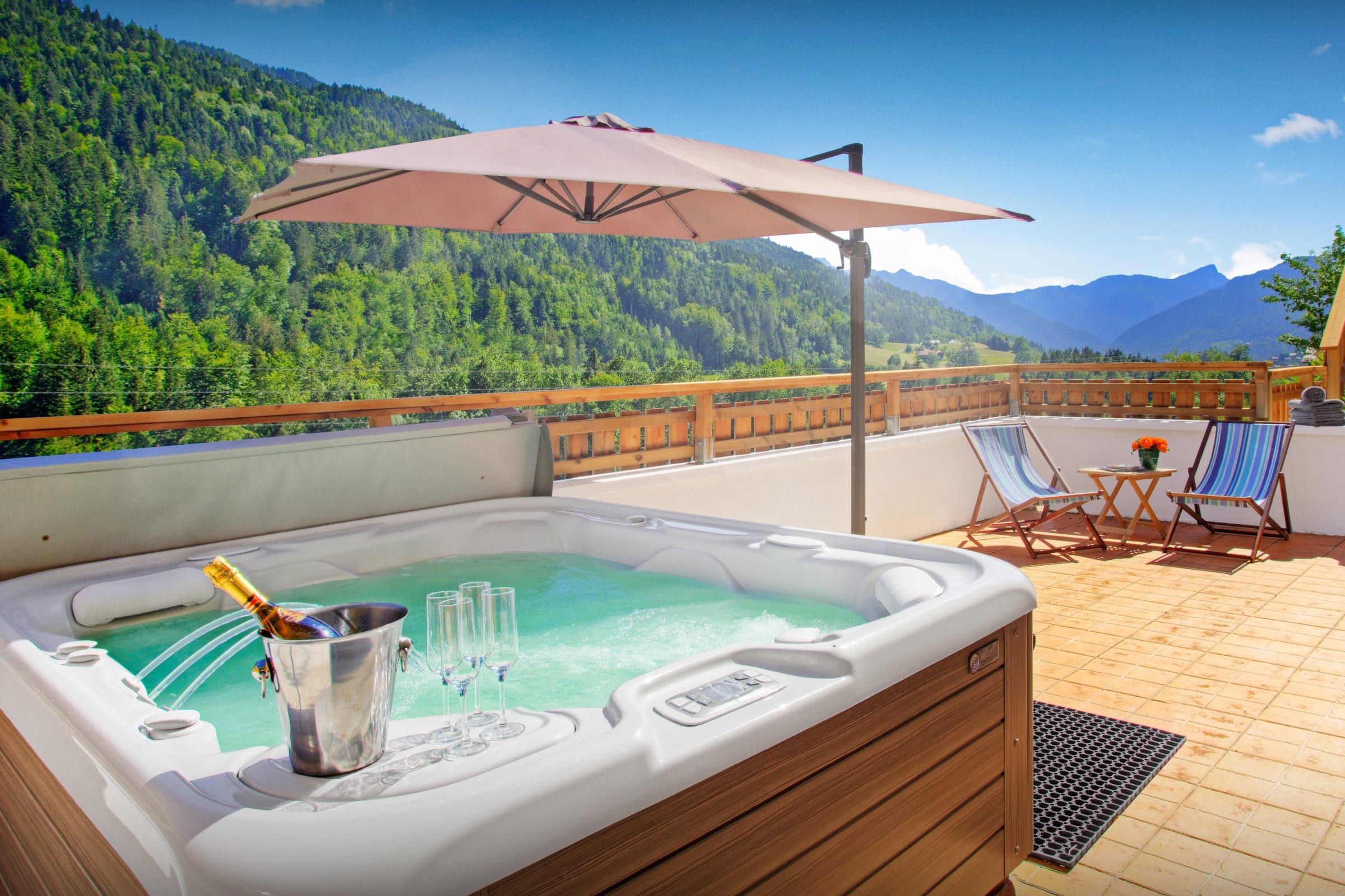 You’ll find this charming chalet in the French Alps, halfway between the ski resorts of La Clusaz and Le Grand-Bornand. It’s just a ten-minute walk from the village of Saint-Jean-de-Sixt, with a ski bus taking you to the slopes from 800 metres away. The chalet is perfect for a couple of families to share, with a mixture of king-size rooms and bunk beds for kids. It’s cosy and welcoming, with a fully-equipped kitchen to cook in. Best of all, there’s a hot tub with mountain views on the terrace.