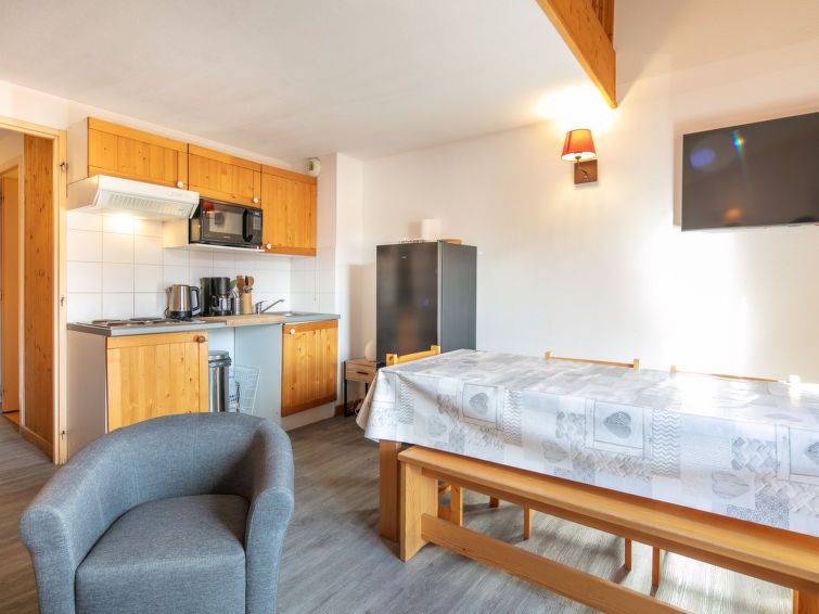 "Les Chamois", 3-room apartment 55 m2 on 1st floor. Object suitable for 6 adults. 1 room with 1 double bed and TV. 1 room with 2 beds. Living room with 1 sofabed and 1 pull-out bed. Open kitchen (4 hot plates, toaster, kettle, microwave, freezer, electric coffee machine). Bath/WC, shower/WC.