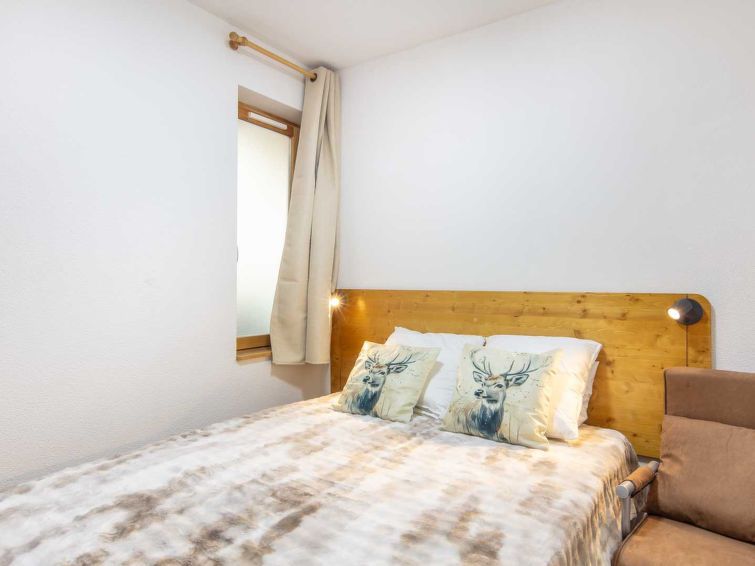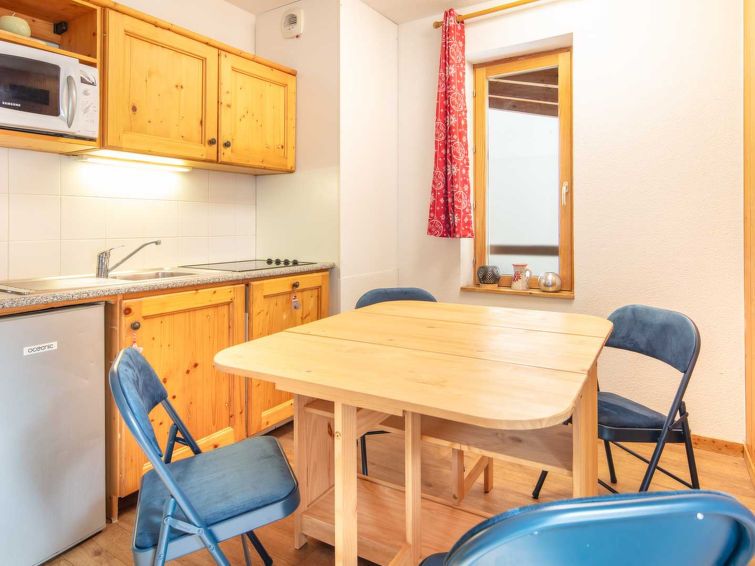 "Les Fermes DE Saint Sorlin - Kalmia K", 2-room apartment 25 m2 on 1st floor. Object suitable for 4 adults. 1 room with 1 double bed. Living room with 1 sofabed and 1 pull-out bed. Open kitchen (4 hot plates, dishwasher, microwave, electric coffee machine). Bath/WC. Terrace. Facilities: sauna.