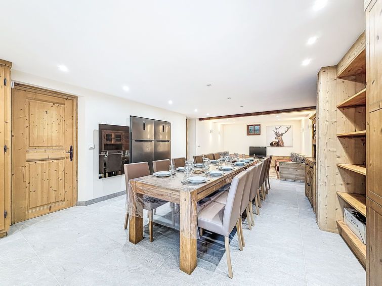 "Chalet La Bergerie", 8-room chalet 200 m2 on 3 levels, north-west facing position. Renovated in 2025, comfortable and beautiful furnishings: large living/dining room with dining table and TV. 1 room with 2 beds (80 cm, length 190 cm). Open kitchen (oven, dishwasher, 3 ceramic glass hob hotplates, toaster, kettle, microwave, electric coffee machine).