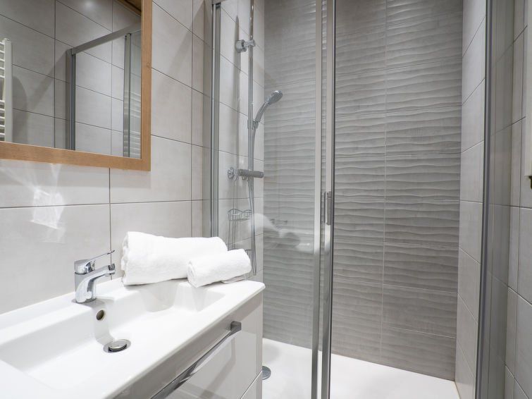 3-room apartment 55 m2 on 2 levels on 6th floor. Entrance hall. Upper floor: (spiral staircase) living/dining room with 1 pull-out bed (2 pers. 2 x 80 cm, length 190 cm). 1 room with 1 double bed (160 cm, length 190 cm). 1 room with 2 beds (90 cm, length 190 cm), shower. Kitchenette (4 hot plates, oven, dishwasher, microwave).
