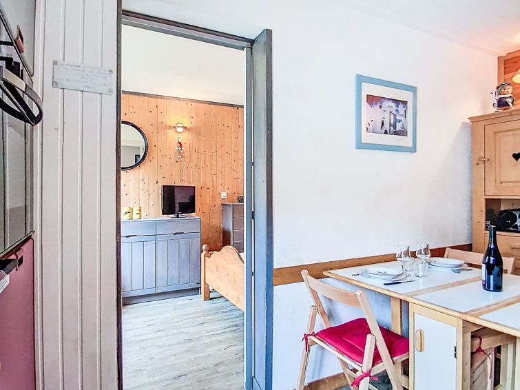 2-room apartment 28 m2 on 2nd floor, north-west facing position. Comfortable furnishings: entrance hall with 1 wall-trunk bed (80 cm, length 190 cm). Living/dining room with TV and heating stove. 1 room with 1 double bed (1 x 140 cm, length 190 cm), TV. Kitchen-/living room (4 hot plates, toaster, kettle, microwave, electric coffee machine).