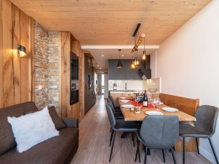 Beautifully furnished and decorated apartment, sunny, lovely mountain views. Quality bedding. Ideally located for skiers and in the heart of Val Claret for shopping and restaurants. Only downside: not being able to air one of the bedrooms and the cramped bathroom upstairs