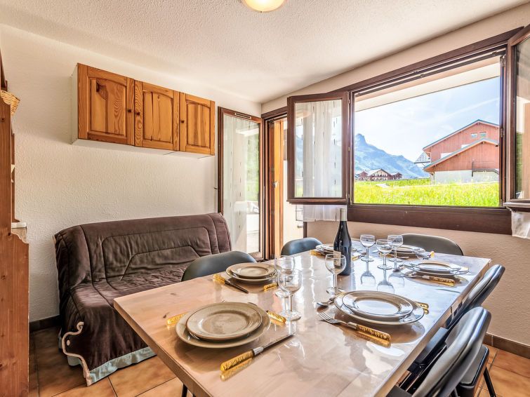 Residence very well placed, a track starting at the door and 2 steps from the bus to reach the station located 15 minutes away. Basic but sufficient equipment, however slightly cramped for 4 people + all ski equipment..