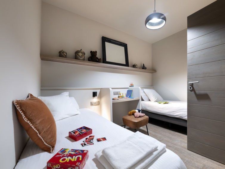 4-room apartment 60 m2. Living/dining room with TV (flat screen). 1 room with 1 french bed and shower. 1 room with 2 beds. Alcove, without window with 2 sleeping facilities. Kitchenette (dishwasher, 2 ceramic glass hob hotplates, toaster, kettle, electric coffee machine, Capsules for coffee machine (Dolce Gusto) extra, combination microwave).