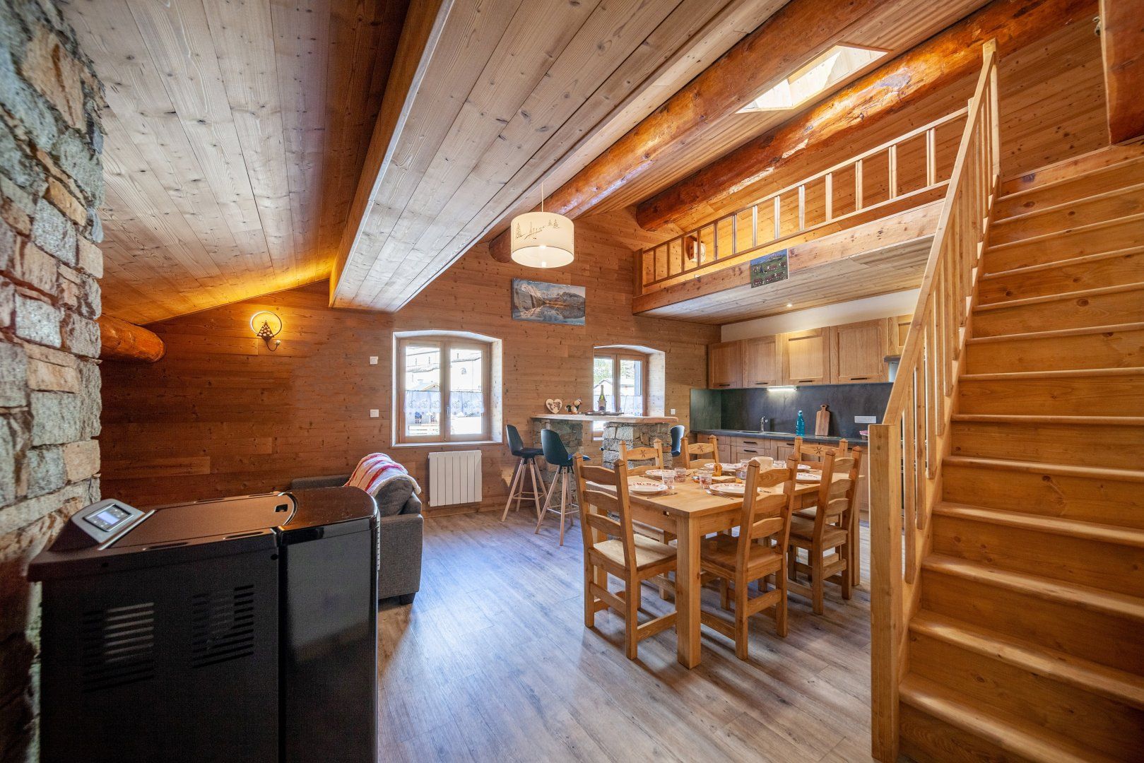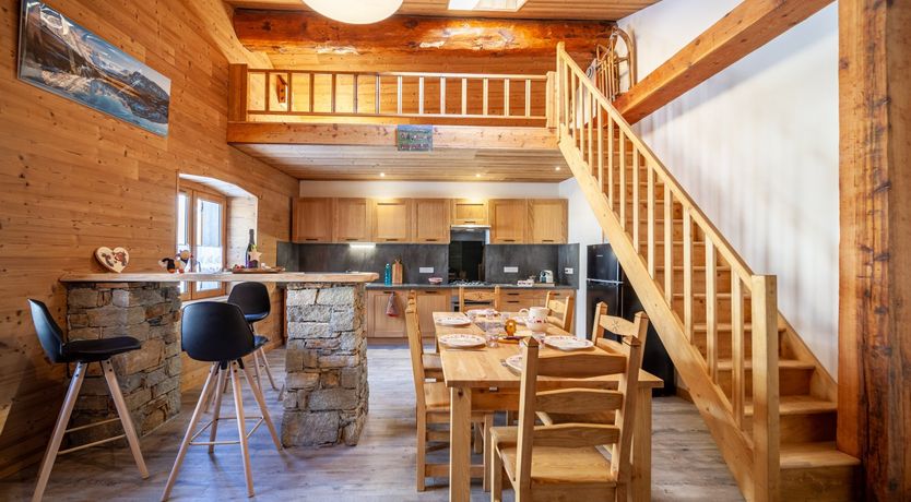 Nestled away in the mountain village of Termignon, this rustic retreat offers a warm, homely welcome after a day out enjoying the slopes. Head home and pull off your ski boots when the cold is nipping a little too enthusiastically at your nose. Step foot inside this charming apartment and take in the cosy living area before you, awash with light from the generous windows and skylights. The open-plan area is such a perfect social spot, so as everyone gathers at the table to exchange stories from the day, dinner can be gently simmering away in the kitchen. With all of the outdoor activities this area promises (six glaciers and sixty-three summits in this little village alone), a hearty meal will be just what you need to refuel after a fun-filled day.