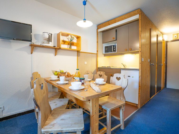 "Arcelle 111", 2-room apartment 29 m2 on 1st floor, north facing position. Living/dining room with 1 pull-out bed (2 pers. 2 x 80 cm, length 190 cm), TV (flat screen), electric heater. 1 room 10 m2 with sliding door with 1 pull-out bed (2 pers. 2 x 80 cm, length 190 cm). Sleeping alcove with 1 x 2 bunk beds (80 cm, length 190 cm).