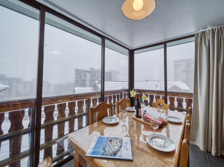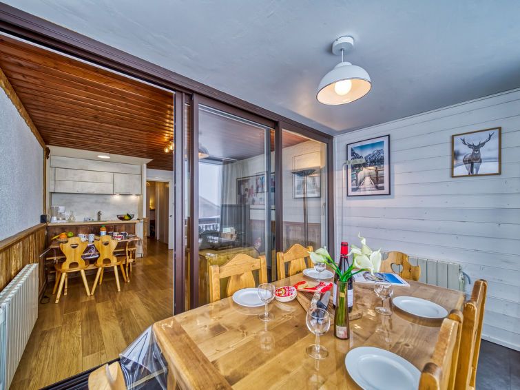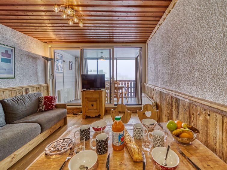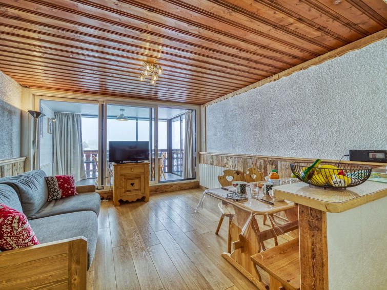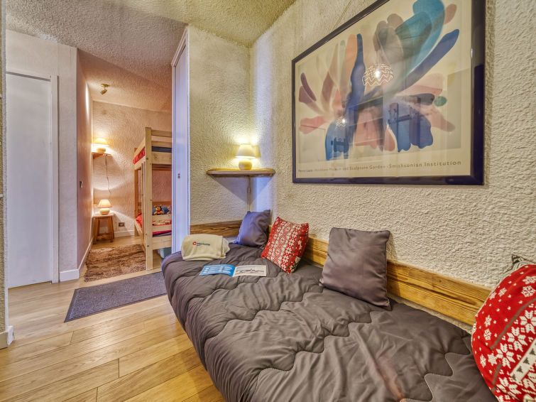 "Serac R2", 1-room apartment 32 m2, south facing position. Spacious and bright, partly renovated in 2022, very beautiful furnishings: living/dining room with veranda south facing position with 1 double sofabed (1 x 140 cm, length 190 cm), TV and electric heating. Exit to the veranda.