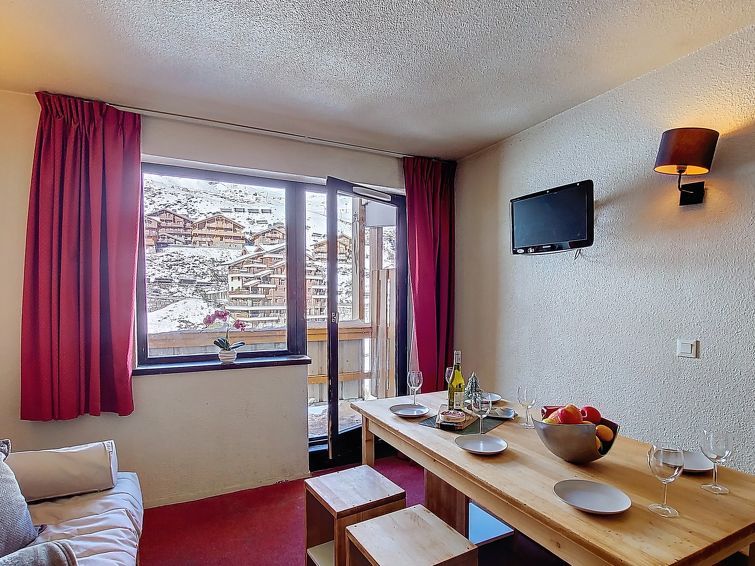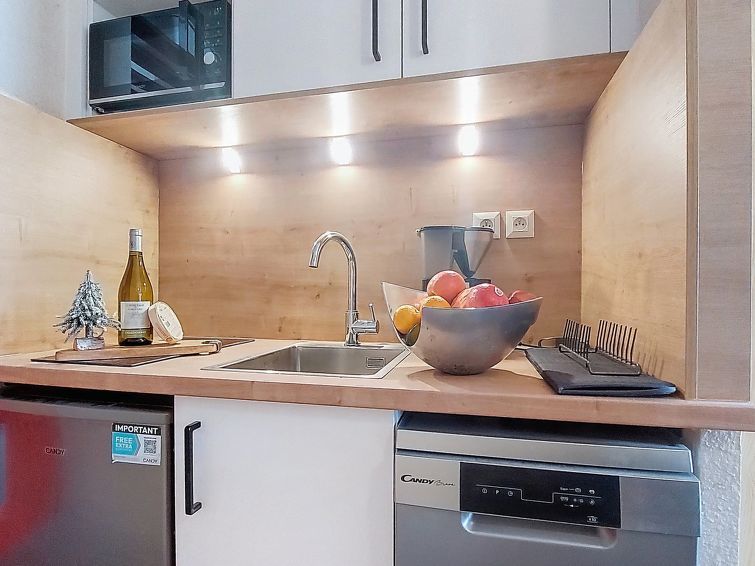 2-room apartment 44 m2 on 7th floor, north facing position. Simple and beautiful furnishings: living/dining room with 1 pull-out bed (1 pers. 2 x 80 cm, length 190 cm), dining table and electric heating. Exit to the balcony, north facing position. Entrance hall with kitchen corner.