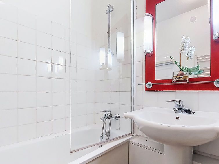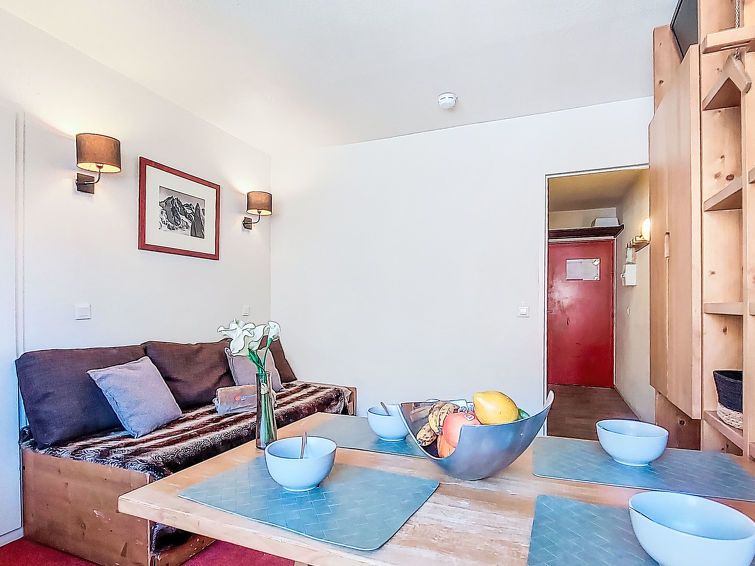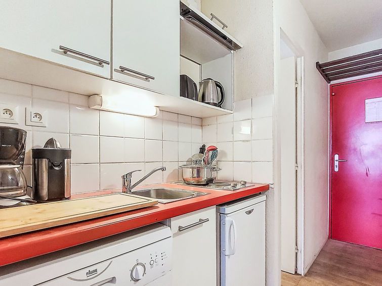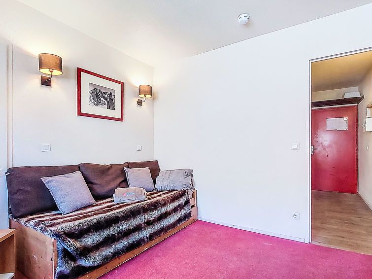 1-room studio 25 m2, north facing position. Practical furnishings: living/dining room with 1 pull-out bed (2 pers. 2 x 80 cm, length 190 cm), dining table, TV, flat screen and electric heating. 1 room with 1 double bed (1 x 140 cm, length 190 cm). Exit to the balcony. Kitchenette (2 hot plates, dishwasher, toaster, kettle, electric coffee machine, combination microwave).
