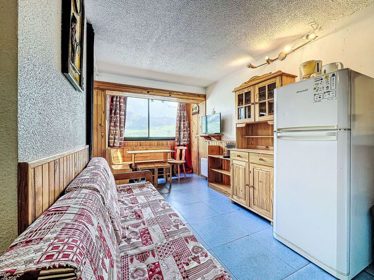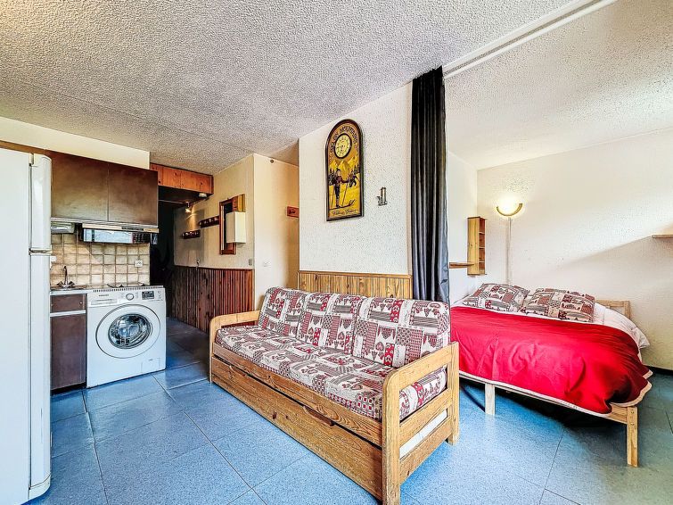 "Vanoise B 752", 2-room apartment 29 m2, south-west facing position. Very comfortable furnishings: living/dining room with (1 x 80 cm, length 190 cm), 1 pull-out bed and TV (flat screen), electric heater. 1 small room with 1 double bed (1 x 140 cm, length 190 cm), electric heater.