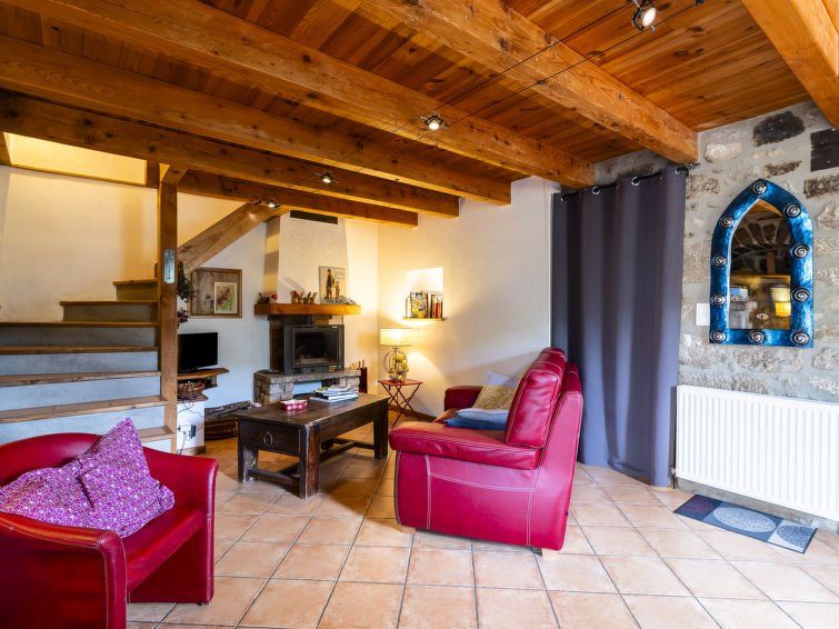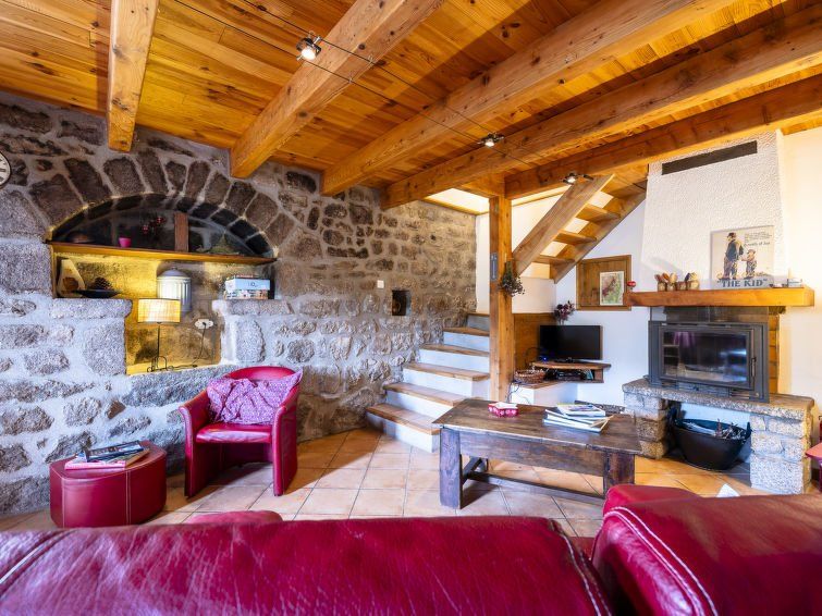 "Le Rouge Borne", 2-room house 70 m2 on 2 levels. Rustic and cosy furnishings: living/dining room with open-hearth fireplace, dining table, TV and DVD. Exit to the terrace. Open kitchen (oven, dishwasher, 5 gas rings, toaster, kettle, microwave, freezer, electric coffee machine) with small dining table.