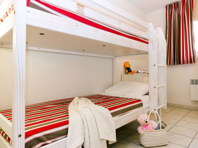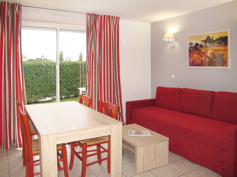 "Odalys Référence Les Hauts de Salavas", 3-room terraced house 40 m2. Bright, practical furnishings: living/sleeping room with 1 sofabeds, 1 pull-out beds, dining table and TV. 1 room with 2 sleeping facilities. 1 room with 1 x 2 bunk beds. Kitchenette (4 hot plates, dishwasher, microwave, electric coffee machine).