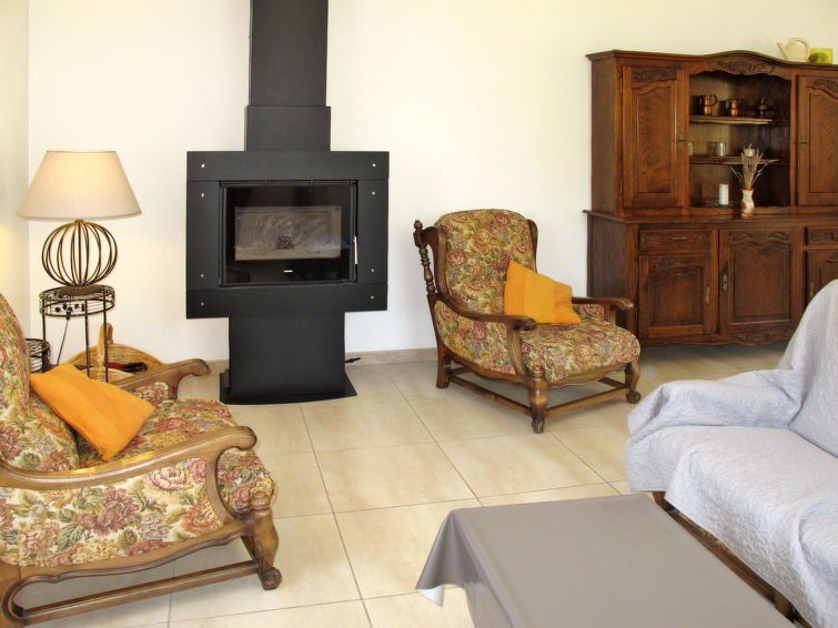 "Les Lilas Blancs", 4-room house 120 m2. Bright, practical furnishings: living/dining room with dining table, satellite TV, radio, CD-player and wood-burning stove. Exit to the terrace. 1 room with 2 beds (90 cm, length 190 cm). 1 room with 1 french bed (180 cm, length 190 cm). 1 room with 1 french bed (140 cm, length 190 cm).