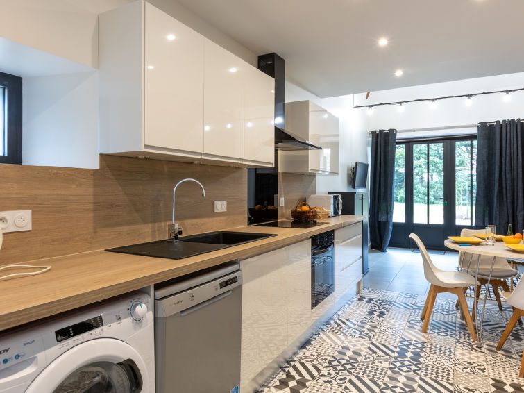 "L'annexe", 2-room Loft 40 m2, on the ground floor. With sloping ceilings, modern and tasteful furnishings: large living/dining room with 1 sofabed (140 cm, length 190 cm), TV (flat screen). Exit to the terrace. Large, open kitchen (oven, dishwasher, 4 ceramic glass hob hotplates, toaster, kettle, microwave, freezer, electric coffee machine).
