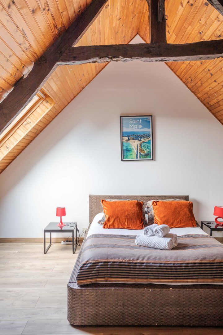 You'll find this characterful farmhouse in sweet Cancale, where fresh oysters are on the menu and Mont Saint-Michel stands proud in the middle of the bay. It's a charming little village, and you'll be well-placed to soak up its authentic Breton atmosphere. Follow the path by the house and you'll end up at Port Briac beach, while the restaurants perched along the quay in town are an excellent spot to relax with a glass of wine and breathe in the salt-tinged air.