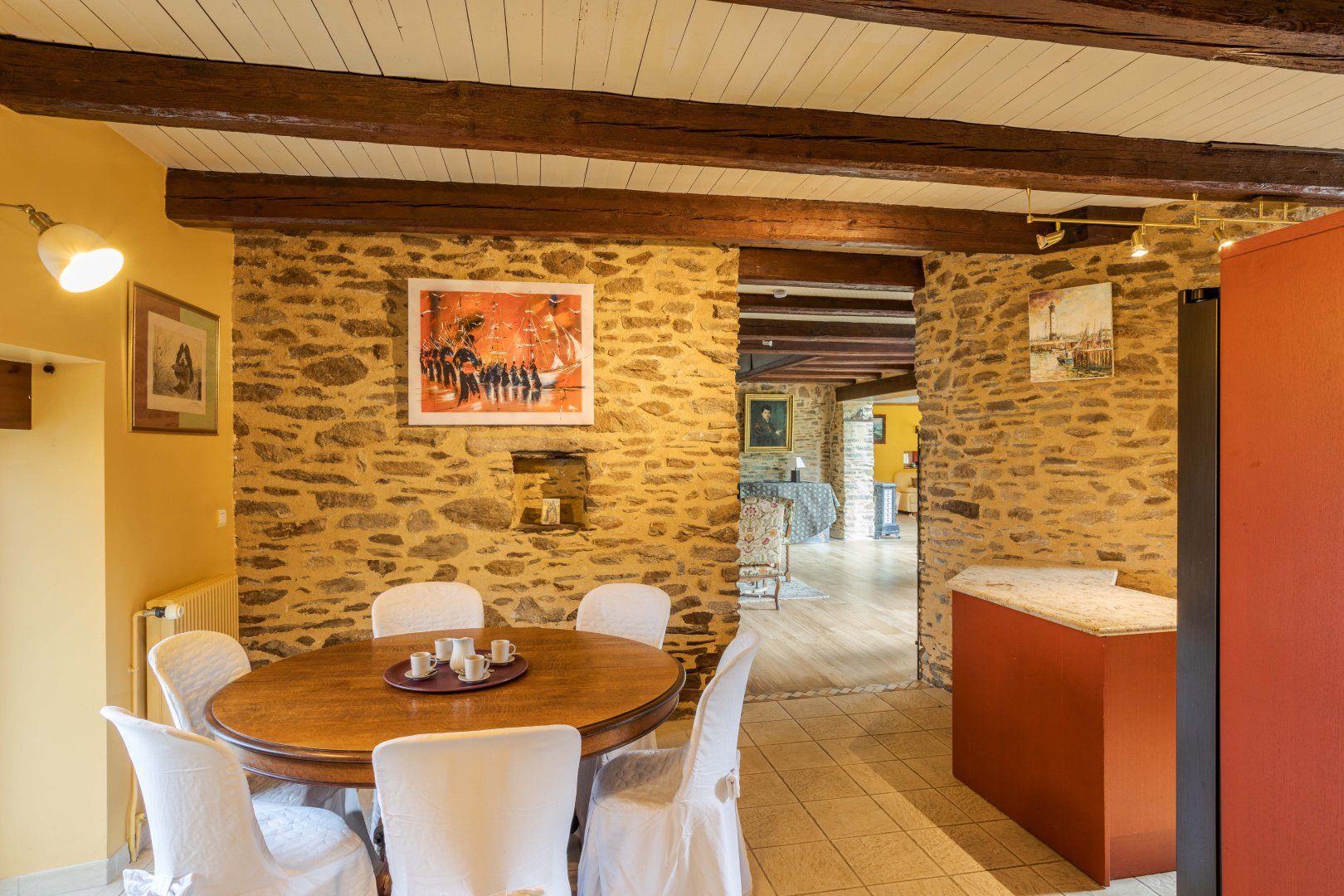 As undeniable as the location is, what makes this home a standout are the stunning traditional features in every room. We're smitten with the exposed stone walls and knotted wooden beams, and many cosy nooks invite you to kick back and unwind away from the group. Mealtimes are a grand affair in the dining room, with its sky-high ceilings and ornamental hearth. Tuck into a home-cooked feast made with locally-sourced seafood and produce, followed by a glass or two of Brittany's famous cider in the conservatory. During the summer, head out to the garden for sundowners and barbecues, then snuggle up for a good night's sleep in the comfortable bedrooms.