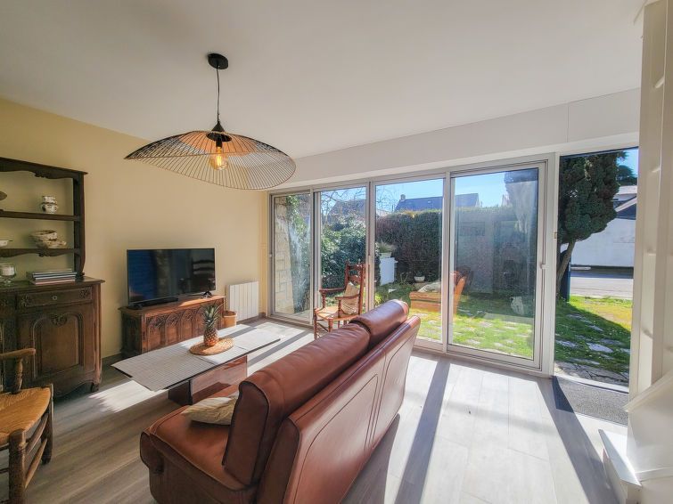 5-room terraced house 110 m2. Fully renovated in 2023, comfortable furnishings: living/dining room with TV (flat screen). Exit to the garden. Open kitchen (dishwasher, 3 induction hot plates, toaster, kettle, microwave, electric coffee machine). Sep. WC. Upper floor: 1 room with 1 french bed (1 x 160 cm, length 200 cm).