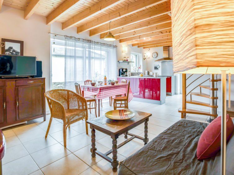 House ideally located, quiet and close to all amenities. The exterior is very nice and pleasant. You immediately feel in the atmosphere of Morbihan. The bedroom with double bed is very good. The one with the trundle beds is very small: no more space when you put the two beds. In addition, the quality of these is very average: they are clearly at the end of their life and are not suitable for teenagers. A good general lick of paint to the ligament would also be necessary.