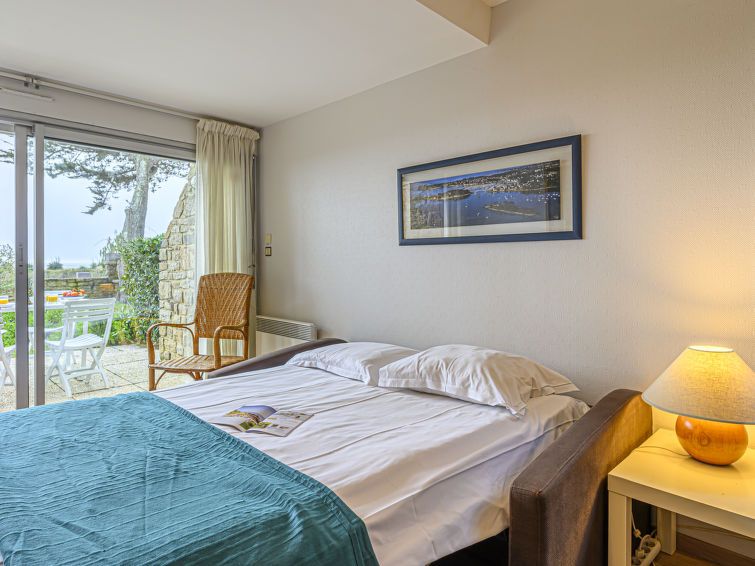 "Les Terrasses de la Plage", 2-room apartment 40 m2, on the ground floor. Living/dining room with 1 double sofabed (1 x 140 cm, length 190 cm), TV (flat screen). Exit to the terrace. 1 room with 2 beds (80 cm, length 190 cm). Kitchenette (oven, dishwasher, 3 ceramic glass hob hotplates, toaster, kettle, electric coffee machine).