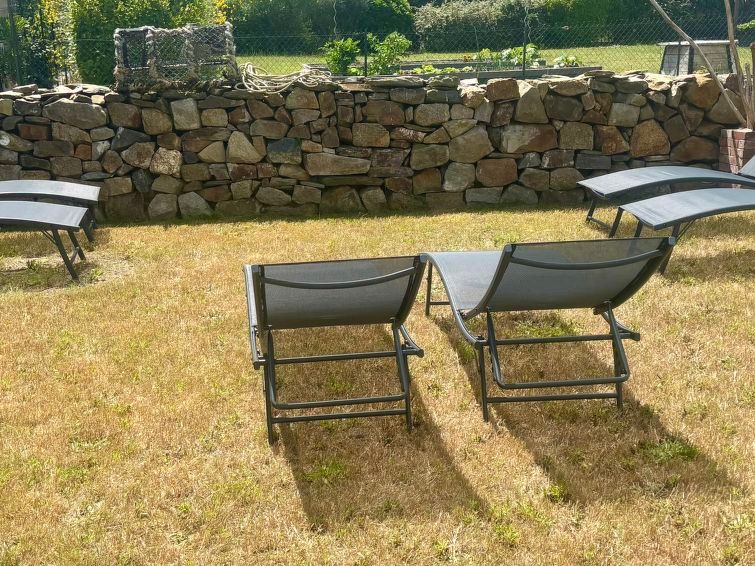 The house is tastefully furnished. The garden is beautiful. Cons: We had to dispose of our garbage in public bins about 1 km away. We were only informed of this after asking twice. We had to buy a broom for the terrace ourselves. ... Lots of cobwebs on all the doors, the outdoor table and chairs, and some of them inside the house too. The grill was full of ash...
