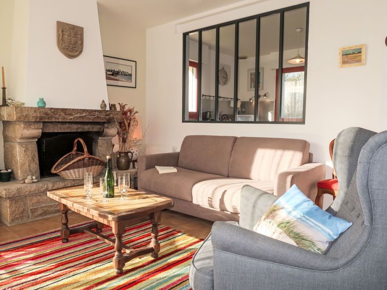 "Ar Baradoz", 4-room house 85 m2 on 2 levels, south facing position. Partly renovated in 2022, beautiful furnishings: entrance hall. Living/dining room with open-hearth fireplace (only for decoration), dining table and TV (flat screen). Exit to the garden. Kitchen (oven, dishwasher, 4 gas rings, toaster, kettle, microwave, electric coffee machine) with small dining table.