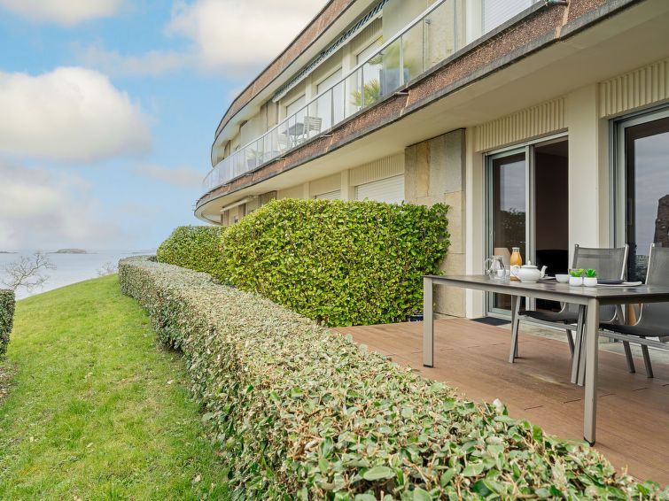 "Le Parc de La Ronceray 6", 1-room studio 40 m2, on the ground floor, south-west facing position. Object suitable for 2 adults. Comfortable and beautiful furnishings: Studio with 1 double sofabed (1 x 160 cm, length 200 cm), dining table and TV. Exit to the terrace. Open kitchen (oven, dishwasher, 3 induction hot plates, microwave).