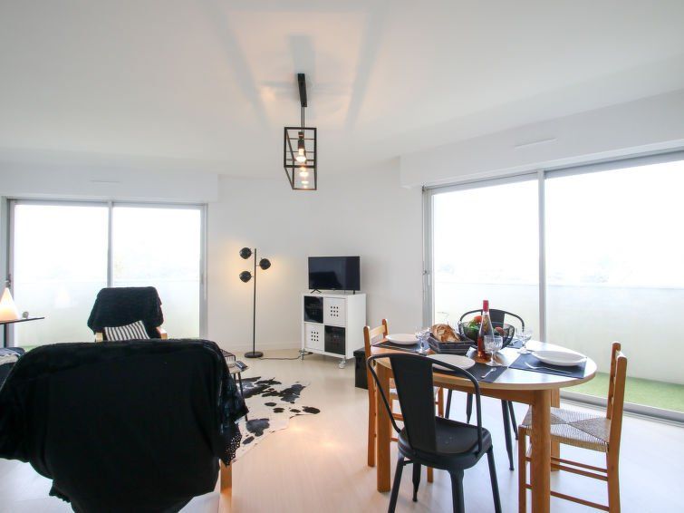 The apartment is on the second floor of a quiet apartment building. It is spacious for 2 people, well equipped, nice kitchen and large balcony. If there are 4 people, 2 sleep on the couch in the living room. Parking available. Beach 200m, restaurants, pizza delivery within walking distance. Dinard town center around 1.5 km. Apartment reasonably clean, windows could do with an extra cleaning session. The building would look much better if it were freshly painted.