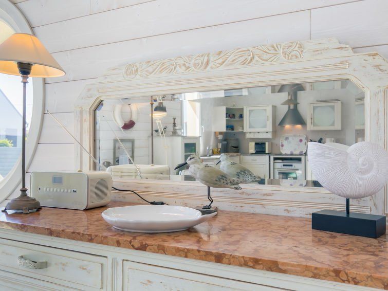 We felt very comfortable in the charming semi-detached house. The friendly landlady, the furnishings, the friendly maritime atmosphere and the large amount of storage space allowed us to relax and enjoy. The upper seating area with a sea view was hardly usable due to the strong wind, so we sat outside on the sheltered terrace. In 3 minutes you can reach the sea with a beautiful beach and wonderful, huge rocks, brilliant!