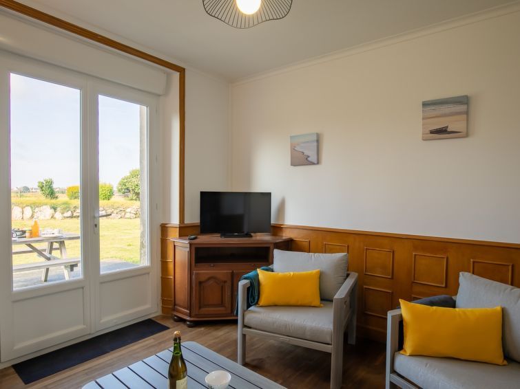 "Ty Cam", 5-room house 80 m2 on 2 levels. Bright, fully renovated in 2023, beautiful and cosy furnishings: living room 15 m2 with TV. Exit to the terrace. Open kitchen 15 m2 (oven, dishwasher, 3 induction hot plates, toaster, kettle, microwave, electric coffee machine). Shower, sep.