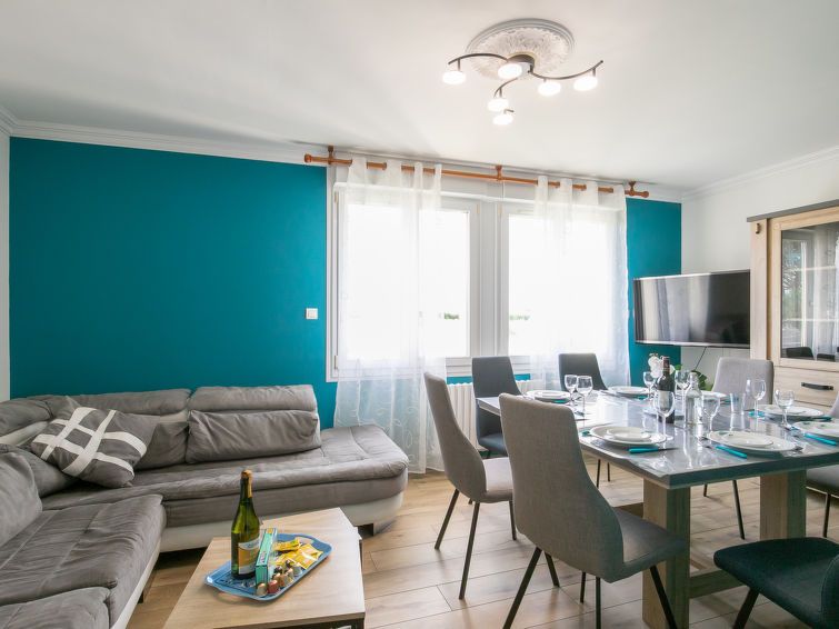 "Entre Terre et Mer", 6-room house 120 m2. Spacious and bright, beautiful and tasteful furnishings: open living/dining room 30 m2. 1 room with 1 french bed (160 cm, length 200 cm). Kitchen 16 m2 (oven, dishwasher, 4 gas rings, toaster, kettle, microwave, electric coffee machine, Capsules for coffee machine (L'Or Barista) extra) with dining table.