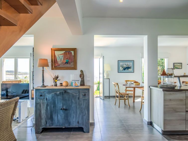 "Ruilh Avel", 5-room house 140 m2 on 2 levels. Spacious and bright, beautiful and cosy furnishings: open large living/dining room 50 m2 with open-hearth fireplace (only for decoration), flat screen. Exit to the garden, to the terrace, south facing position. Large, open kitchen (oven, dishwasher, 5 induction hot plates, toaster, kettle, microwave, freezer, electric coffee machine).
