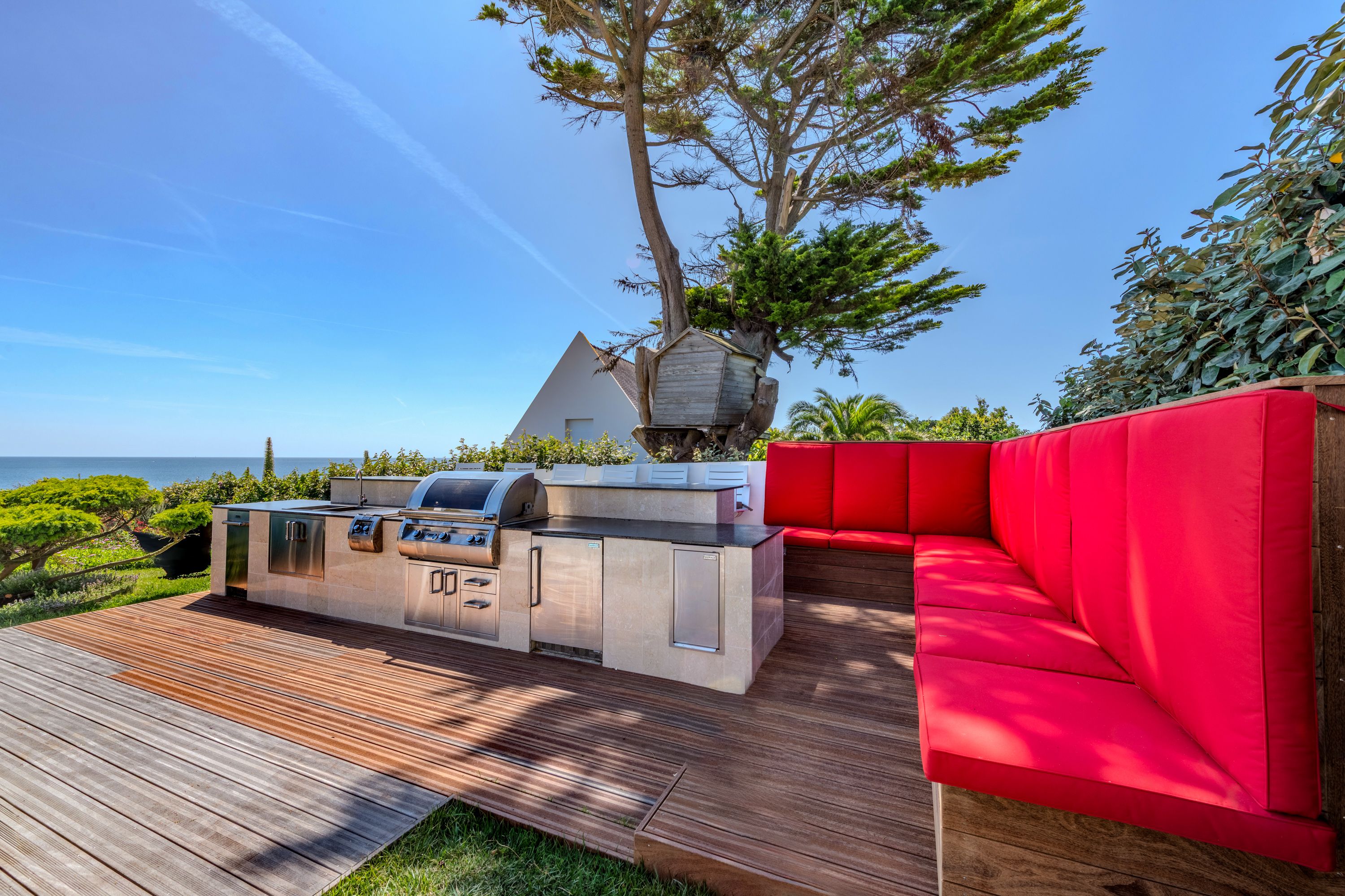 With an outdoor kitchen, alfresco dining area, private Jacuzzi, and swim spa, this coastal home is well set up for outdoor living. Boasting views of the sea from the garden and balconies, you can listen to the waves as you kick back and relax. And for sociable meals, the barbecue awaits – you can even choose an accompanying bottle of wine from the well-stocked wine cellar for a fee. When you’re ready to explore, you’re just a short stroll from the amenities of Locmaria-Plouzané, and less than a kilometre from the nearest beach.