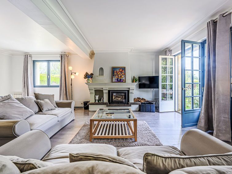 "Maison de Kermian", 6-room house 170 m2 on 2nd floor. Comfortable furnishings: living/dining room with open-hearth fireplace and TV (flat screen). Exit to the terrace. 1 room with 1 french bed (1 x 140 cm, length 190 cm). Kitchen (oven, dishwasher, 4 gas rings, toaster, kettle, electric coffee machine).