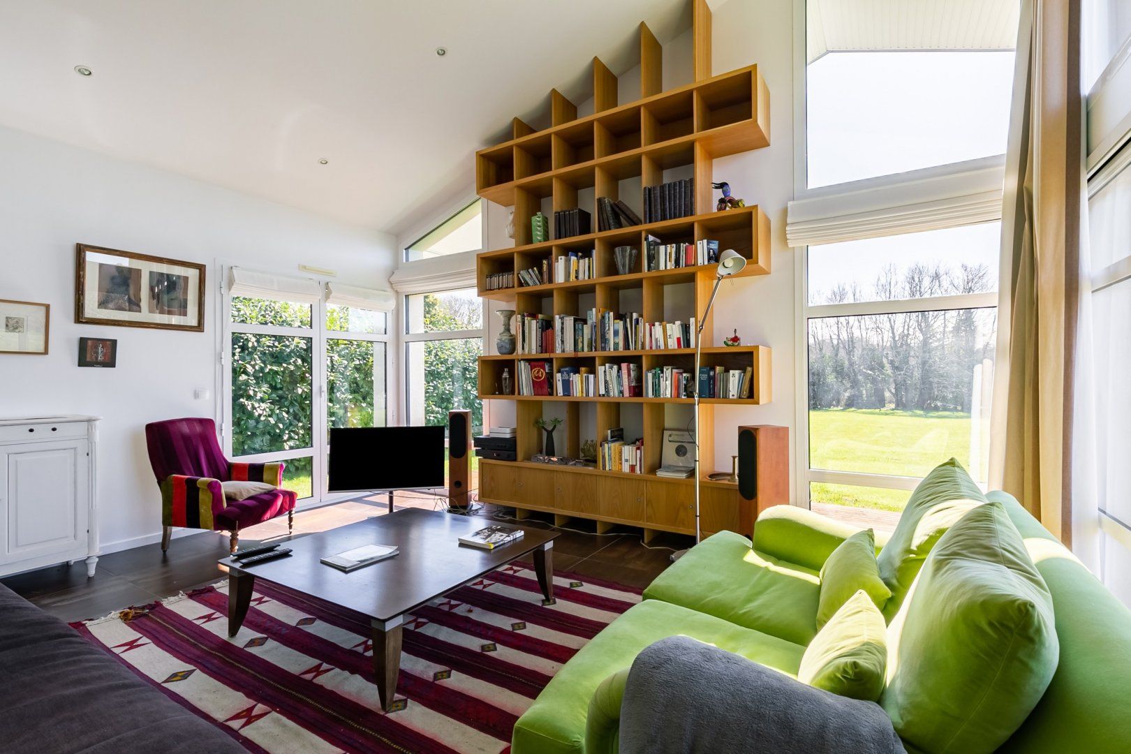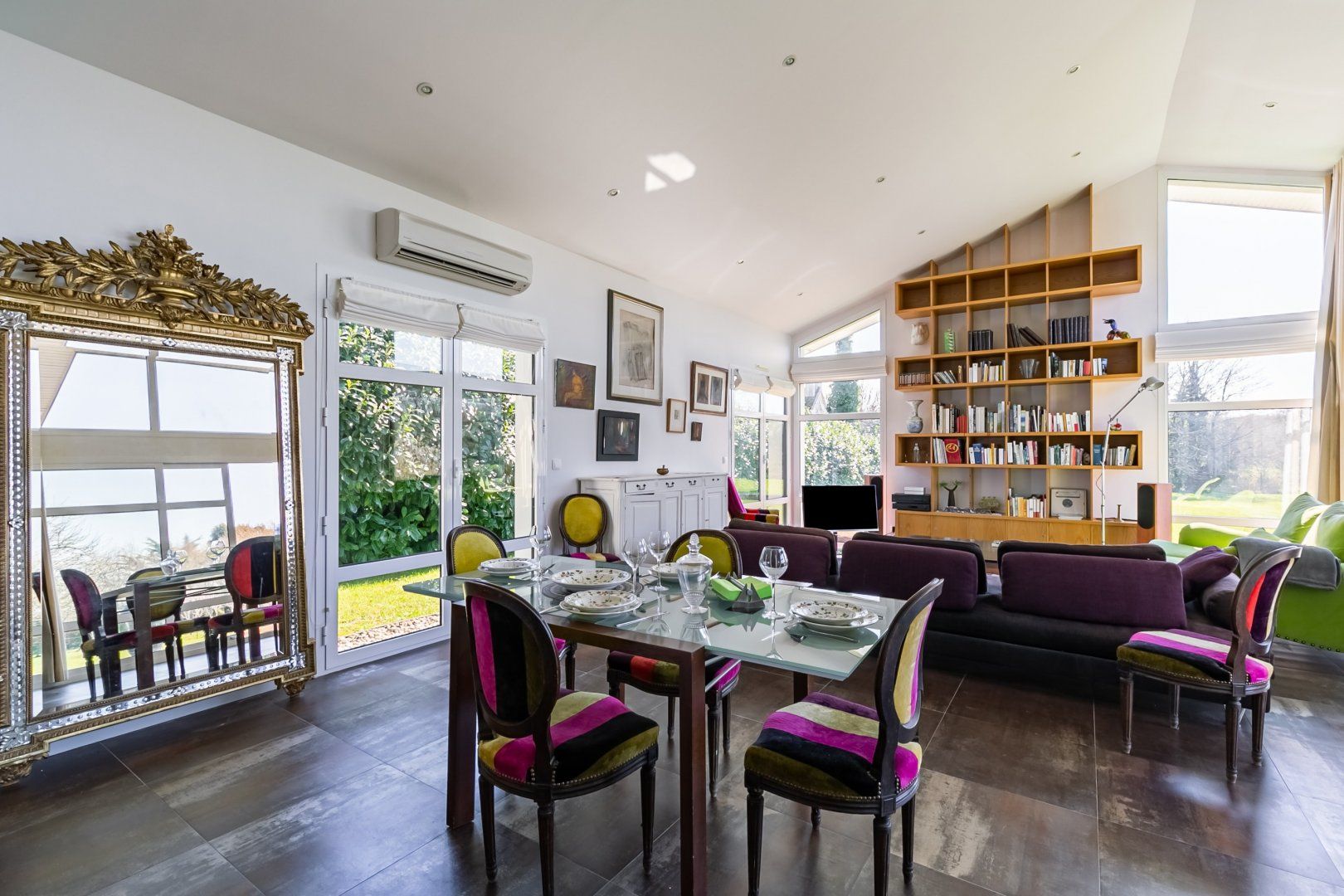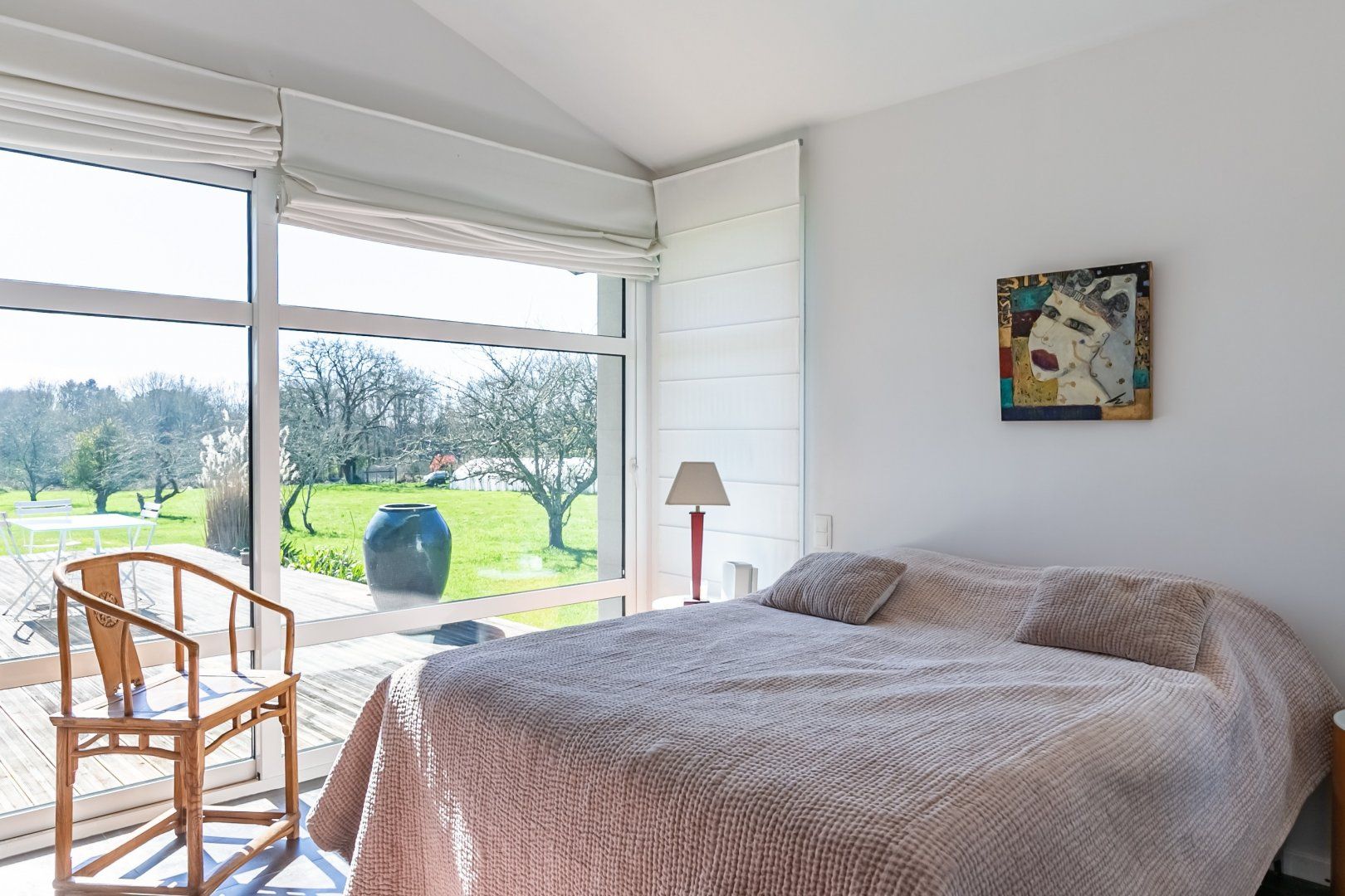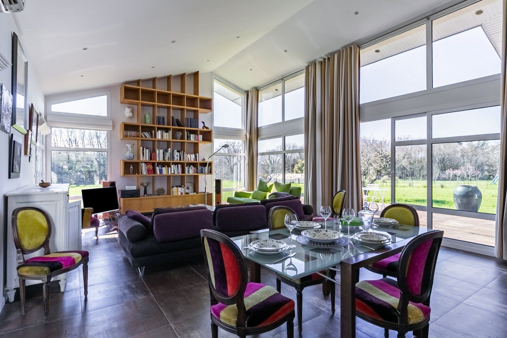 Far away from the stresses of city life, this modern masterpiece lets you feel the Breton sea breeze from its southwest-facing private deck. Begin the day by treating yourself to a French breakfast of coffee and croissants in bed, as you enjoy a leafy view through these giant windows. From planning your outings at the kitchen island to reading books on the grape-coloured sofas, this open-plan living space was designed with conversation and elegance in mind. When you return from a fun-filled adventure, be sure to listen to your favourite songs as you sip wine at sunset.