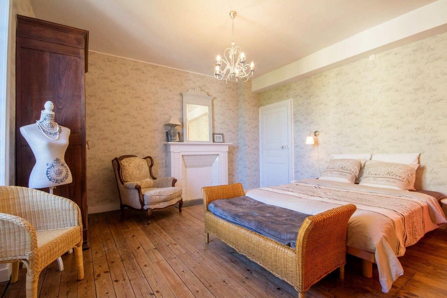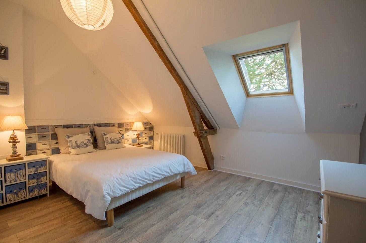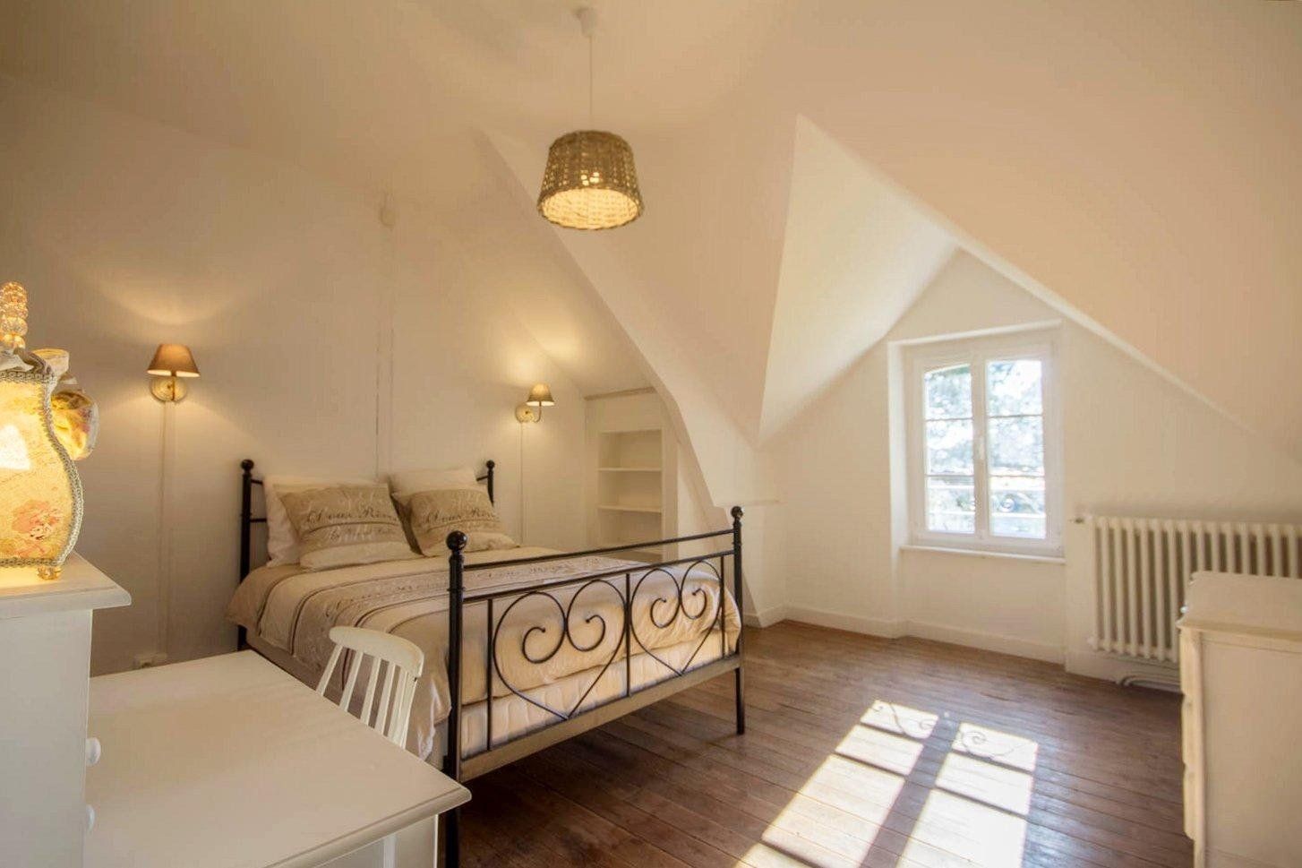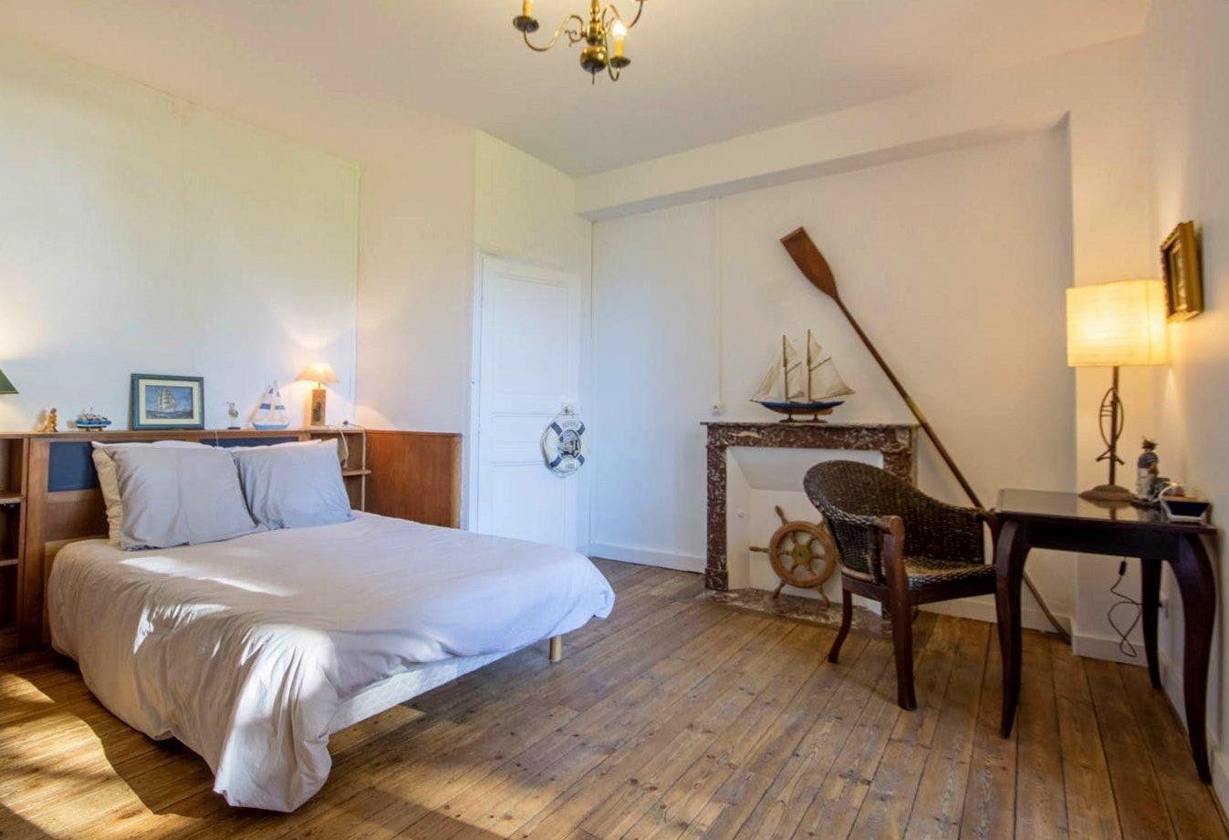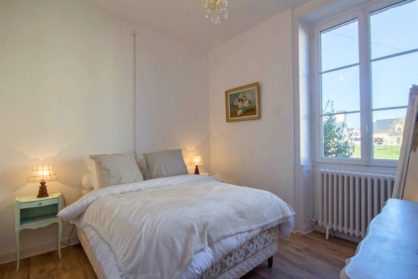 High ceilings and tall windows make for palatial proportions in many of the rooms, especially the lavish bedrooms and the living room with its chandelier and vintage-style furnishings. By contrast, other spaces have been modernised, like the chic white kitchen which is plenty large enough for cooking up Breton-inspired feasts.