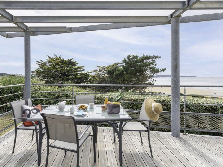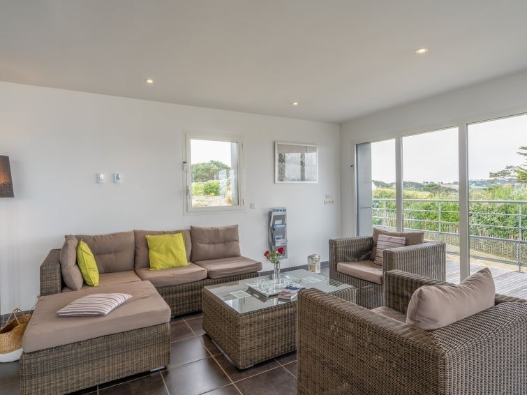 The house is very modern, clean and everything is in perfect order. The hosts are very nice, the house is close to the sea, 5 minutes walk to a great creperie. It takes some getting used to that there is only garden furniture in the living room and dining room. It's a shame that there are no rain protection or parasols on the two fantastic terraces. Unfortunately there are no kitchen towels and a grill would be great.