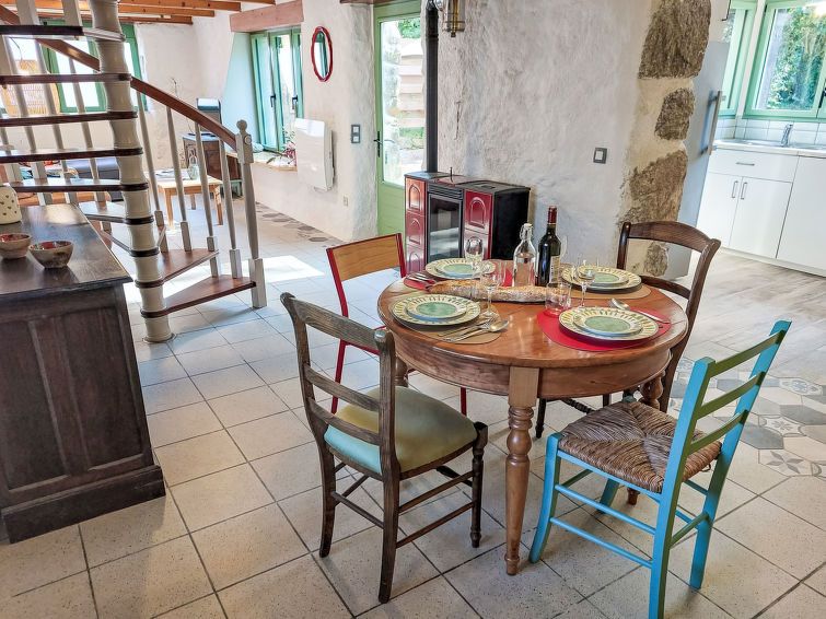 "La Longère", 4-room house 70 m2 on 2 levels. Bright, fully renovated in 2025, beautiful and cosy furnishings: open living/dining room 30 m2 with TV, flat screen and wood-burning stove. Exit to the garden, to the terrace. Open kitchen (oven, dishwasher, 4 induction hot plates, toaster, kettle, microwave, freezer, electric coffee machine).