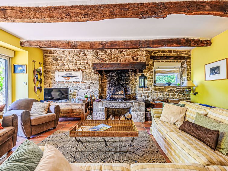 "Chromlech'dek", 6-room house 135 m2. Comfortable furnishings: dining room with TV (flat screen). Exit to the terrace. Kitchen (4 hot plates, oven, dishwasher, toaster, kettle, microwave, freezer, electric coffee machine). Upper floor: 1 room with 1 french bed (1 x 160 cm, length 190 cm), shower.