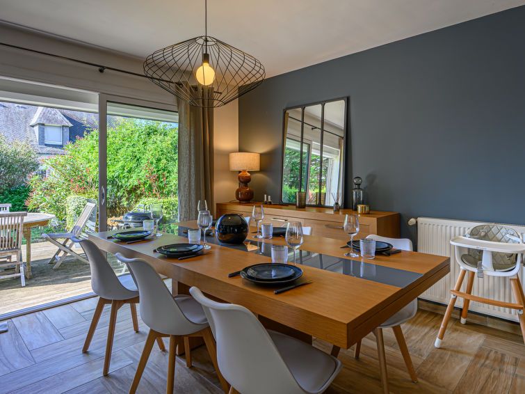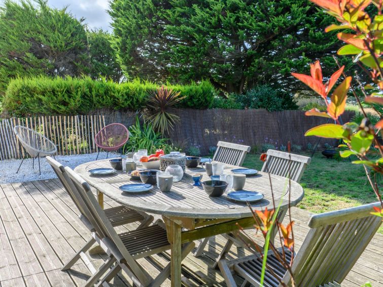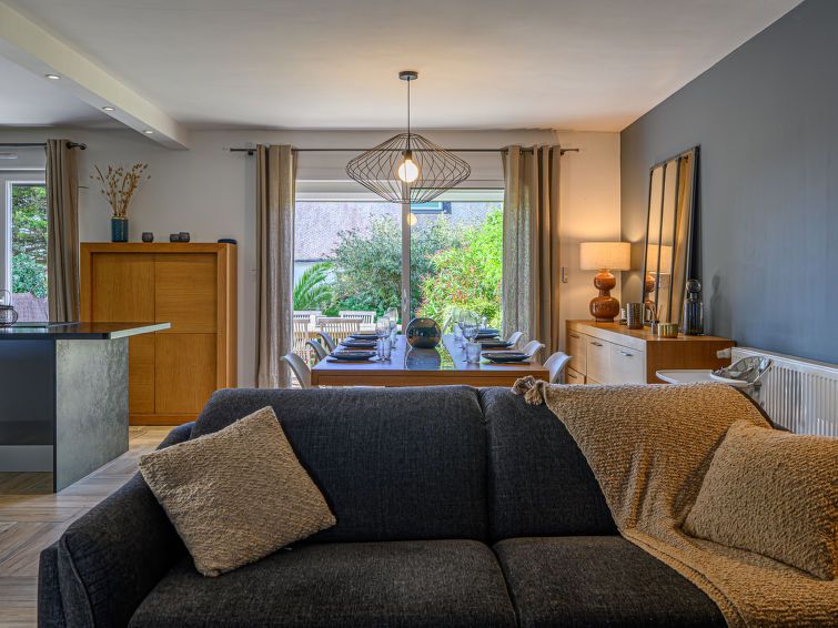 "Maison Er Menhir", 3-room terraced house 70 m2, on the ground floor. Comfortable furnishings: living/dining room with 1 sofabed (160 cm, length 190 cm), TV (flat screen). Exit to the terrace. 1 room with 1 french bed (160 cm, length 200 cm). 1 room with 1 french bed (160 cm, length 200 cm).