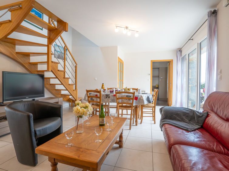 "Gîte des Perdrix", 4-room house 80 m2 on 2 levels. Beautiful and cosy furnishings: living/dining room with dining table, satellite TV, DVD and wood-burning stove. Exit to the terrace. 1 room with 1 french bed (160 cm, length 200 cm), shower. Open kitchen (oven, dishwasher, 4 induction hot plates, toaster, kettle, microwave, freezer, electric coffee machine, raclette grill).