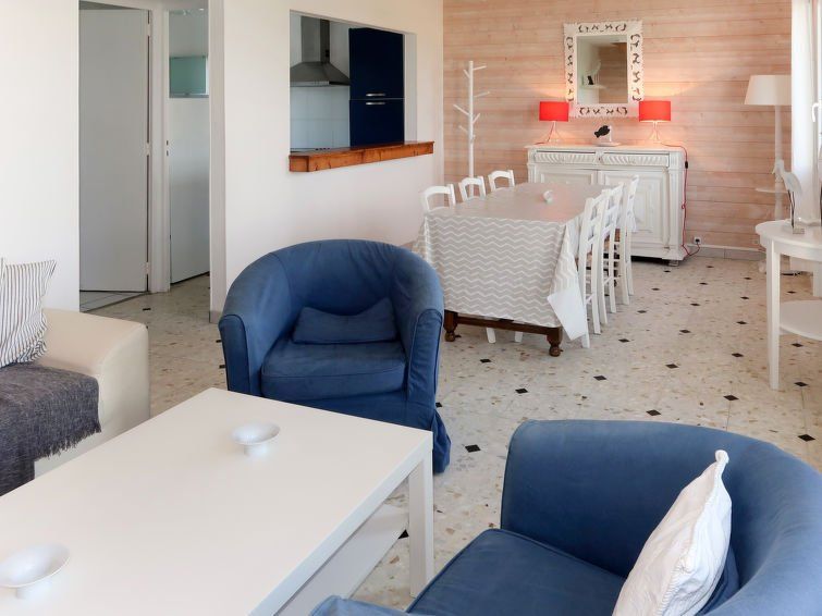 "Rendez-vous à la plage", 4-room terraced house 70 m2 on 2 levels. Practical and cosy furnishings: living/dining room with dining table, satellite TV and international TV channels. 1 room with 1 french bed (140 cm, length 190 cm). Open kitchen (oven, 4 ceramic glass hob hotplates, toaster, kettle, microwave, freezer, electric coffee machine).