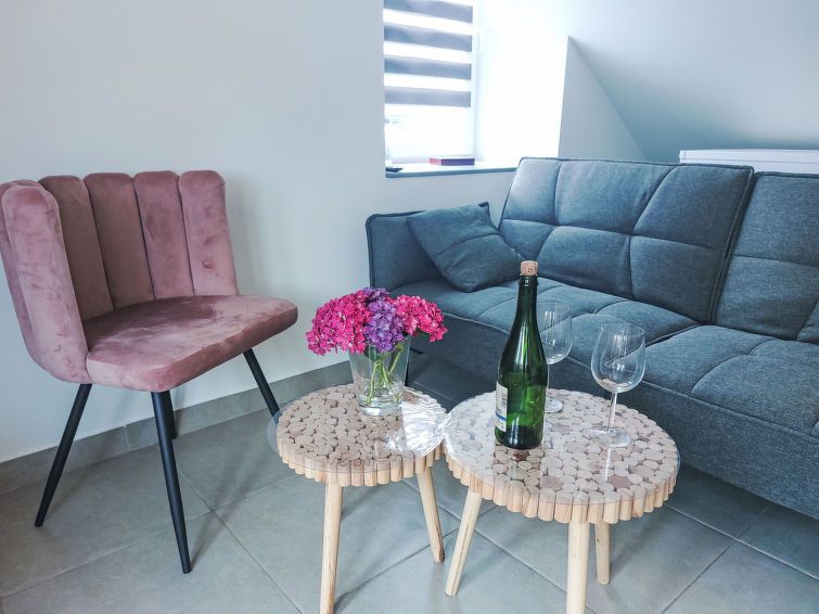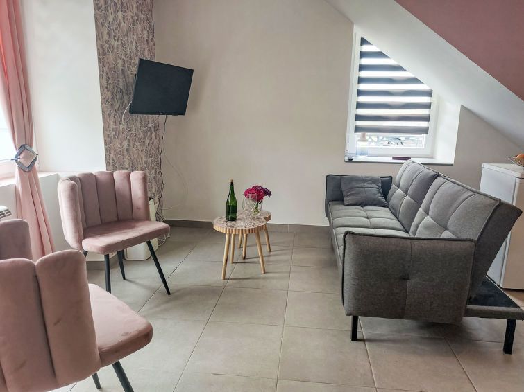 "Ty Roz", 2-room apartment 45 m2, on the ground floor. Object suitable for 2 adults. Beautiful and cosy furnishings: living/dining room with TV and flat screen. 1 room with 1 french bed (140 cm, length 190 cm). Kitchenette (oven, 2 ceramic glass hob hotplates, toaster, kettle, electric coffee machine) with dining table.