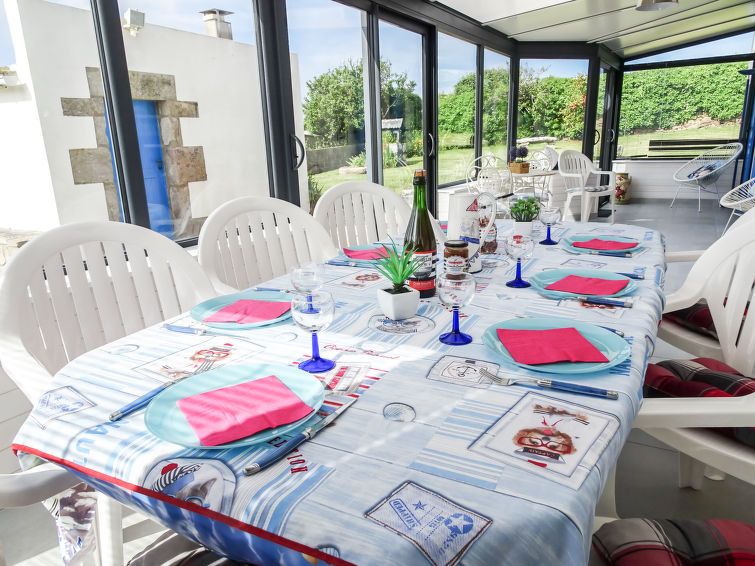 "Kerludu", 5-room house 130 m2 on 3 levels. Beautiful and rustic furnishings: large living/dining room with veranda with TV (flat screen). Open kitchen (oven, dishwasher, 4 induction hot plates, toaster, kettle, microwave, electric coffee machine) with dining table. Shower, sep. WC, double hand-basin.