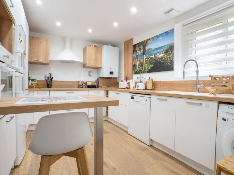 House in a quiet residence in June and a stone's throw from the main beach. Nice neighborhood. However, the house was not clean on arrival. Dust everywhere, musty smell upstairs, mixed with that of bags of plants hidden in the bedroom cupboards. Dirty ovens and dishes. The accommodation's trash can was full to the brim. Old-fashioned, moderately clean toilets. Only the kitchen is spacious and modern. Disappointing considering the price per week.